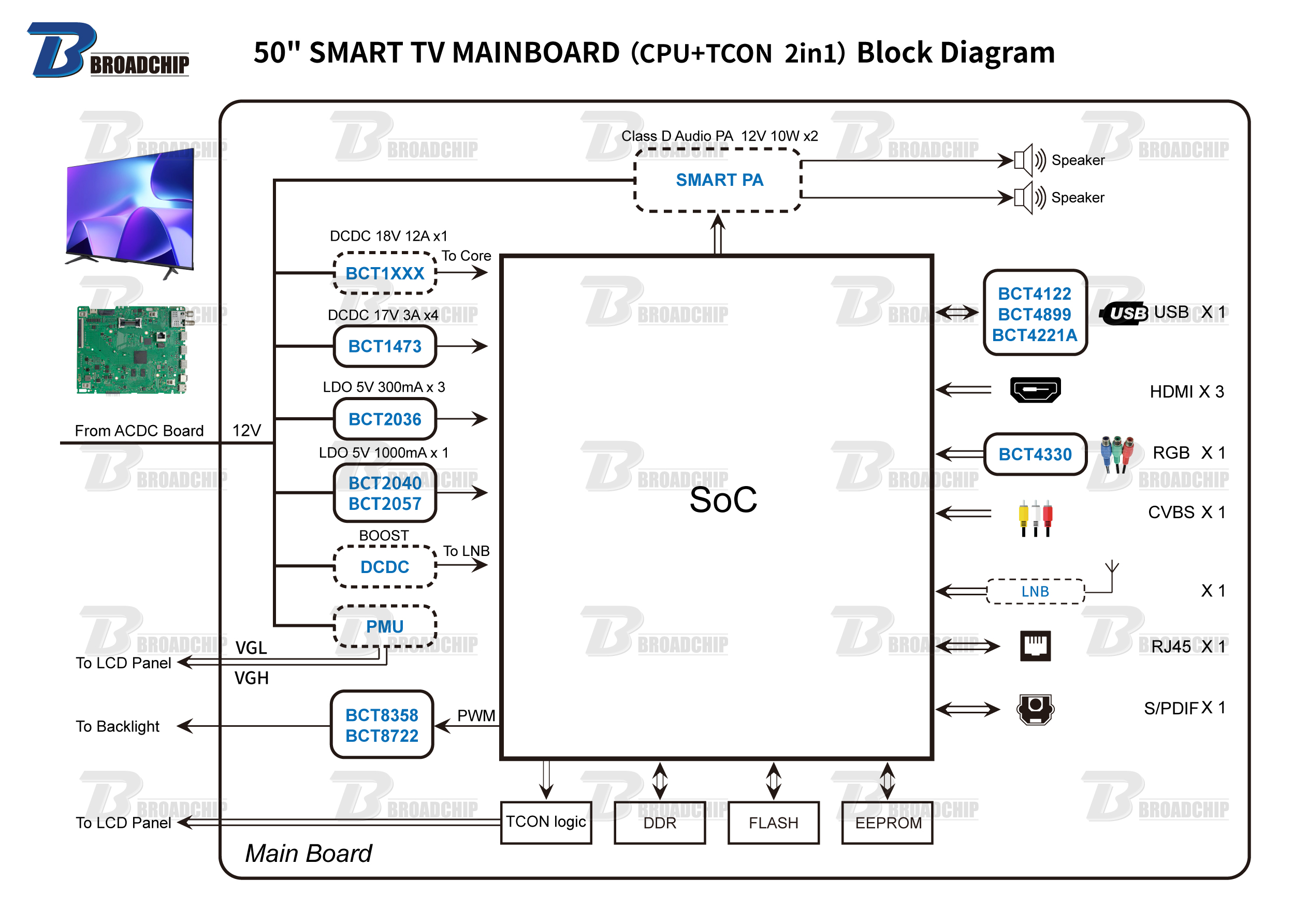 50'' SMART TV MAINBOARD (CPU+TCON 2in1)Block Diagram